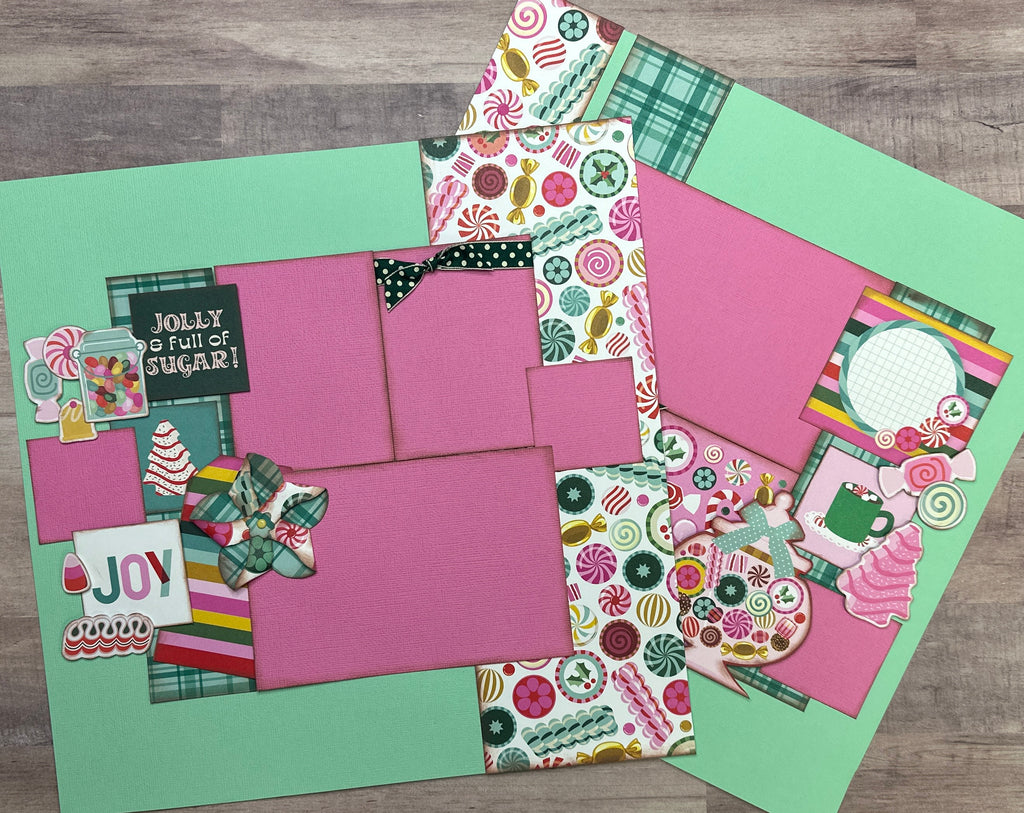 Jolly And Full Of Sugar, Christmas Themed  2 Page Scrapbooking Layout Kit, Christmas diy craft kit, Simple Stories Hard Candy Christmas